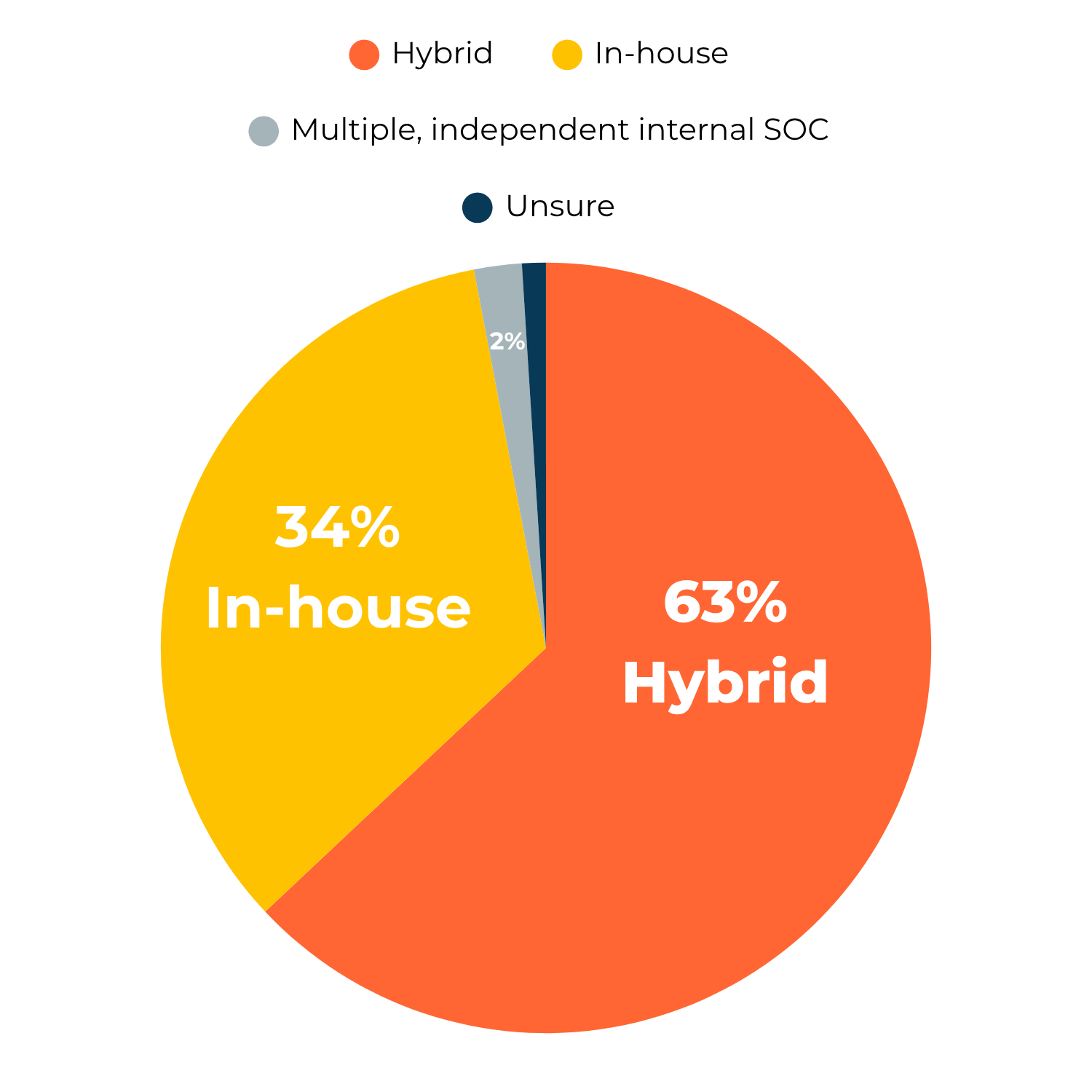 This is also why, according to a study by Gartner, the most common SOC operating model is the hybrid approach, chosen by nearly two-thirds (63%) of companies.
